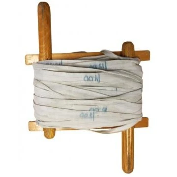Pakket bestaand uit: Een afzetlint van nylon zit op een houten haspel
