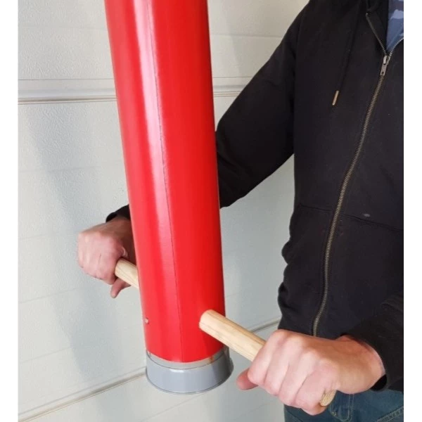 Team rood en team blauw leggen een parcour af waarbij de bal op de buis moet blijven. Wie legt het parcour het snelst af waarbij de bal blijft liggen.