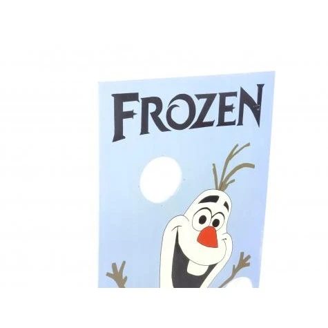 Pakket bestaand uit: Houten paneel met afbeelding het Disney figuur Frozen op metalen standaard en 10 foamballetjes.