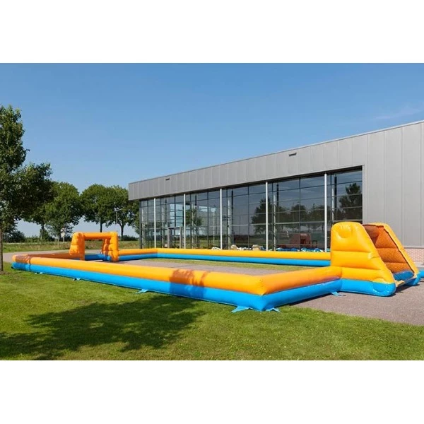 De voetbalboarding is in mum van tijd te plaatsen waarna het voetballen kan beginnen. De voetbalboarding is perfect om in te zetten tijdens evenementen, een zeskamp of sportactiviteiten. De voetbalboarding bestaat uit één deel, waardoor het gemakkelijk te vervoeren is. De boarding wordt geleverd inclusief blower, verankeringsmateriaal, transportzak en een duidelijke handleiding. Zo heb je direct alles bij elkaar voor een mooie beleving!