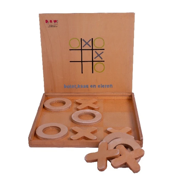 Spel voor 2 waarbij een speelt met rondje, de andere met kruisjes. Beurtelings wordt een figuurtje in een vak gelegd. Wie het eerst 3 dezelfde figuren recht of diagonaal heeft wint.