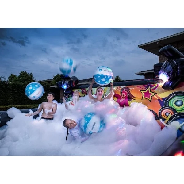 Een geweldige disco schuimparty deze boarding met full color achterwand, creëert zijn eigen feestelijke discoschuim via eenschuimkraan aan de achterzijde.