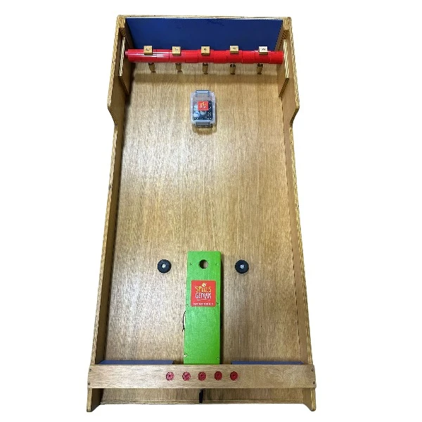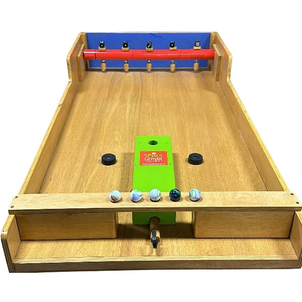 Het doel is dat u de ballen rolt naar de houten blokjes waar de dobbelstenen op liggen, tel de punten waar de dobbelsteen op rolt.