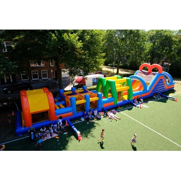 Deze 27 meter lange stormbaan geleverd in vrolijke kleuren is perfect om kinderen en of volwassenen een actieve en super leuke dag te bezorgen! Hij heet dan ook niet voor niks de Fun Run. Kruipen, rennen, springen, klimmen en glijden doe je op het dubbele parcours van de Fun Run stormbaan van maar liefst 27m. Wie bereikt als eerste de overkant van deze opblaasbare hindernisbaan? De dubbele Fun Run stormbaan biedt extra vermaak doordat er niet één, maar twee afzonderlijke banen zijn aangebracht. Dat wordt één groot feest voor iedereen.