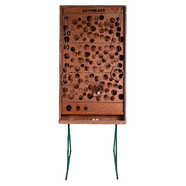 De speler die als eerst de bal in het bovenste gat krijgt wint!
