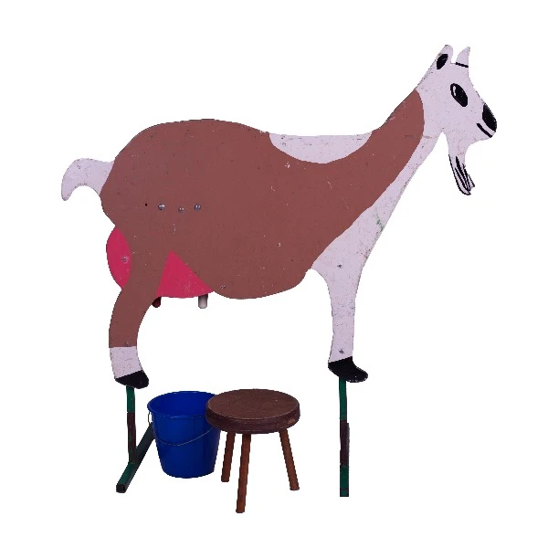Pakket bestaand uit: Een standaard met een houten geit en een emmer