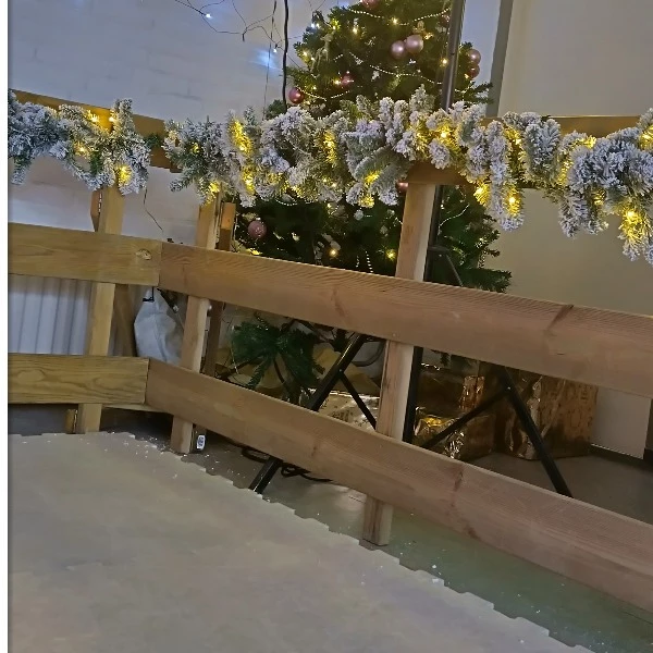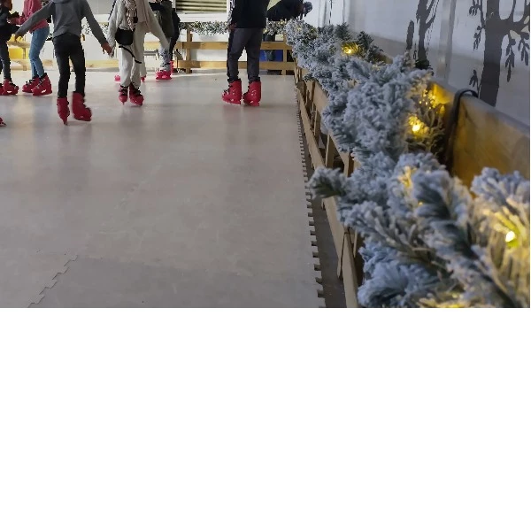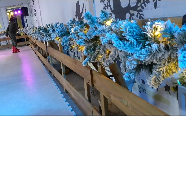 Extra sfeer aan een kunststofschaatsbaan met houten hekjes.