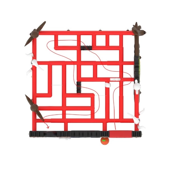 Voor extra spannend effecten is aan dit doolhof een aantal lichteffecten en griezeleffecten toegevoegd zoals: