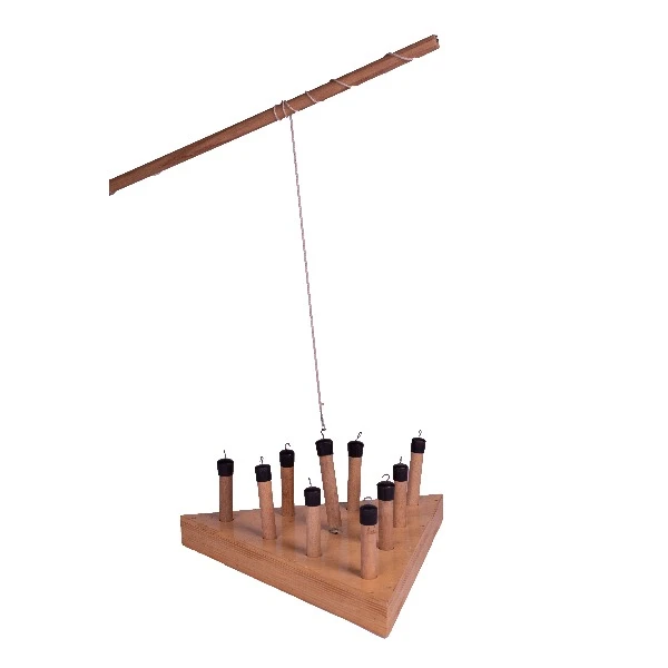Probeer met de hengel binnen 2 minuten tijd alle houten stokjes uit het bord te zwengelen, voordat je tegenstander dat doet.