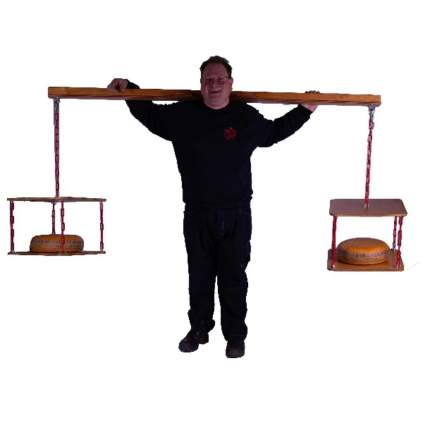 Onze kaasdragersjuk is een houten constructie om in balans kazen te transporteren.