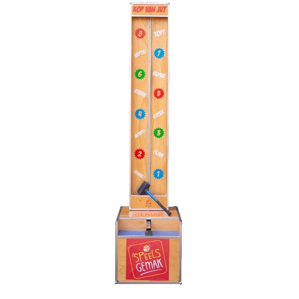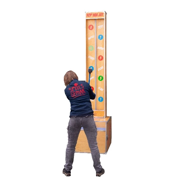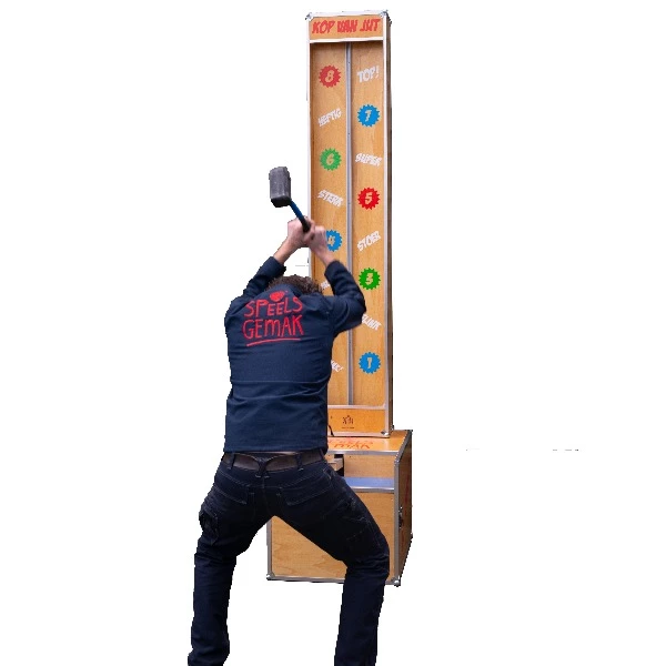 Ben jij sterk genoeg om de bel te laten rinkelen? Pak de hamer en geef een flinke mep! Daag je vrienden uit en kijk wie de grootste spierballen heeft. Deze Kinder Kop van Jut is speciaal voor jullie gemaakt door onze eigen helden in het magazijn. Veel plezier en laat zien hoe sterk je bent!