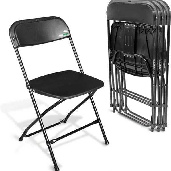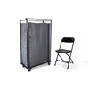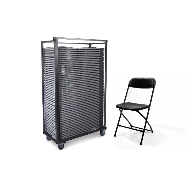Zwart en leverbaar op kar. Een stevige en nette klapstoel.