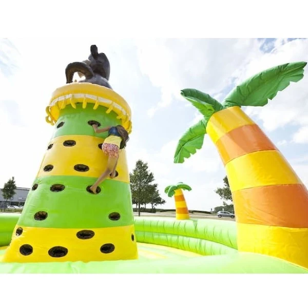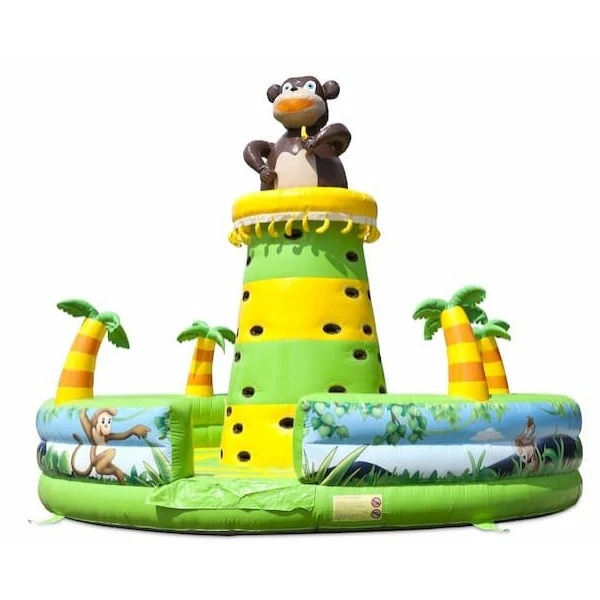 Een geweldige eyecatcher op elk evenement: de klimtoren met jungle thema. Deze opblaasbare klimtoren is een echte aanrader. De kinderen hebben de mogelijkheid om naar boven proberen te klimmen. Daarnaast kunnen ze er ook rondje om heen rennen en springen. Bovenop de klimtoren zit een opvallende Aap als een 3D-object. Doordat hij 7m hoog is, is hij voor de hele buurt goed te zien, en trekt dit springkussen veel bezoekers.