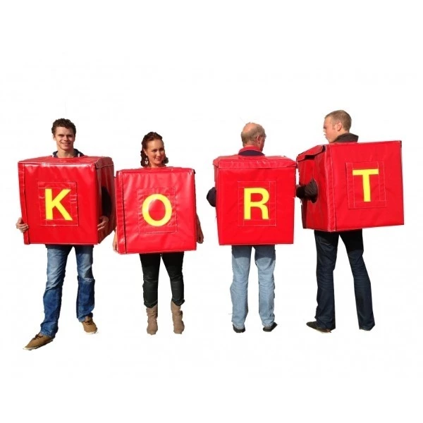 Er staan 4 personen in een letterpak en 1 persoon leest de vragen voor. Iedereen met een letterpak heeft een eigen letter. Met de letterpakken moet het groepje een woord maken. Het woord moet het juiste antwoord zijn op de vraag die wordt gesteld.