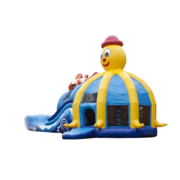 Een uitdagend springkussen met een trap, glijbaan en genoeg ruimte voor spring plezier. Er is ook de mogelijkheid om een zwembad toe te voegen. Dat is ideaal voor in de zomer! Klik hier voor de Mega Multiplay Octopus met zwembad.