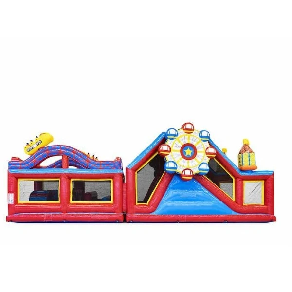Onze 13,5 meter lange stormbanen zijn perfect voor jouw klanten die wel zin hebben in een wedstrijdje! Wie bereikt als eerste de overkant van deze opblaasbare hindernisbaan? Kruip, ren, spring, klim en glijd over het dubbele parcours in Rollercoaster thema.