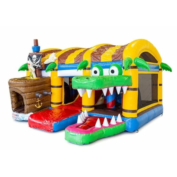 Het Multiplay Springkussen XXL Piraat heeft veel speelmogelijkheden met leuke objecten op het springvlak en een coole glijbaan. De Multiplay piraat heeft opvallende 3D objecten op het springkussen en is cool voor een verjaardag. De krokodil heeft een grote aantrekkingskracht op jouw evenement. Kinderen komen langs allerlei afbeeldingen en kleurrijke obstakels, wat het thema helemaal compleet maakt.
