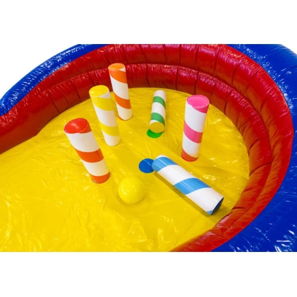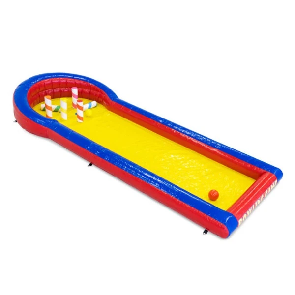 Dit Bowling spel is een leuk en spannend opblaasbaar spel voor jong en oud. Pak de bowlingbal en rol hem over de baan. Probeer zoveel mogelijk kegels om te gooien. Er is een rode en een blauwe bal, zodat je het spel met z'n tweeën kunt spelen. Ga de strijd aan met je tegenstander en geniet van de spanning én ontspanning die dit opblaasbare spel biedt. De game is gemakkelijk en snel neer te zetten zodat je snel plezier kunt maken.