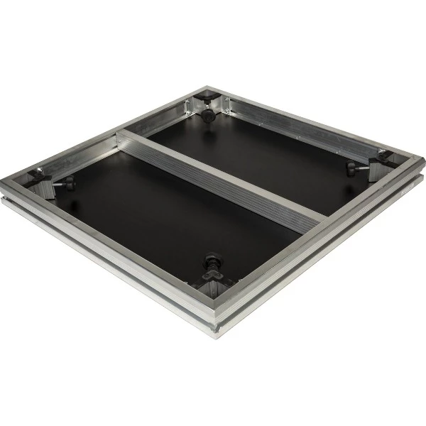 Hoogwaardig 1m x 1m podiumelement voor binnen of tijdelijk buitengebruik. Water en vuurbestendig 12mm multiplex beukenhout met speciale “HEXA” antislip toplaag. Kan een belasting aan tot 500 kg/m² !
