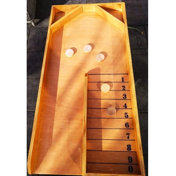 Punten sjoelbak is een leuke afwisseling op het gewone sjoelen. Men moet d.m.v. kaatsen tegen de rand de stenen bij de hoogste punten proberen te krijgen.