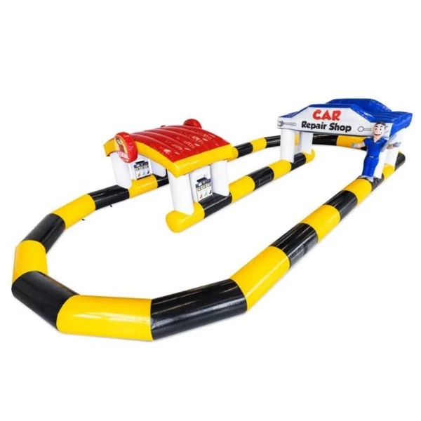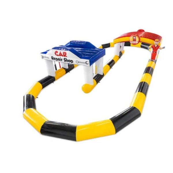 Met deze opblaasbare Racebaan City kunnen kinderen racen door middel van bijvoorbeeld mini bikes of skelters of trapauto's. De opblaasbare racebaan heeft een 3D benzinepomp waar je doorheen kunt racen. De 3D figuur verwelkomt je al bij de pomp. Een toffe opblaasbare racebaan die voor heel veel raceplezier gaat zorgen!