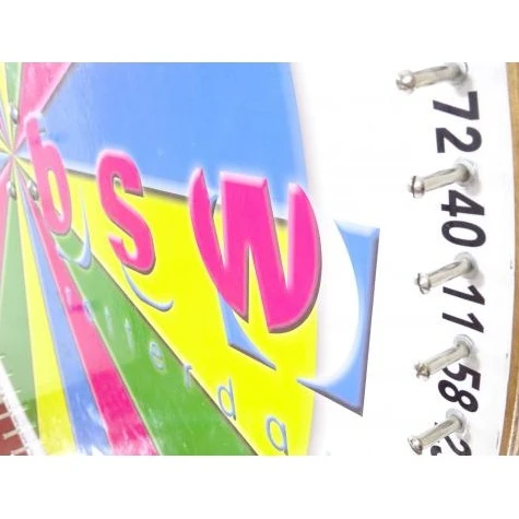 Geef de schijf een zet zodat deze ronddraait. Hij of zij die een lot heeft met het nummer dat de schijf dan aangeeft wint.