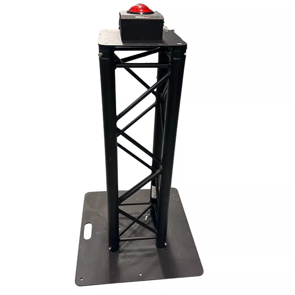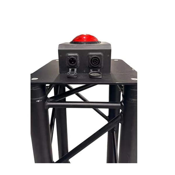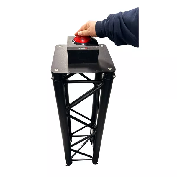 De rode knop zit vast aan een trus en is erg makkelijk te verplaatsen/ vervoeren.
