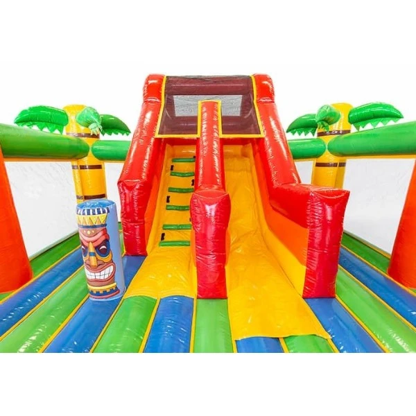 Met dit coole springkussen maakt u uw tropische feestje helemaal af. Springen en glijden maar!