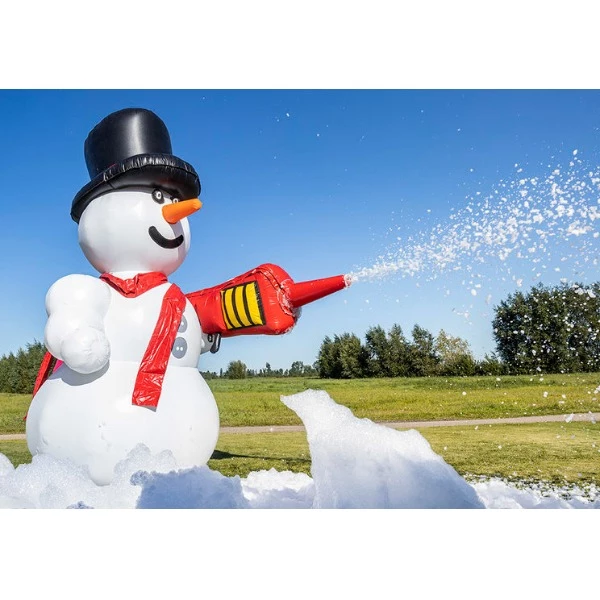 Deze sneeuwman doet het net even anders! In plaats van gewone sneeuw, schiet hij schuimvlokken de lucht in!