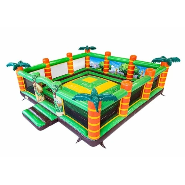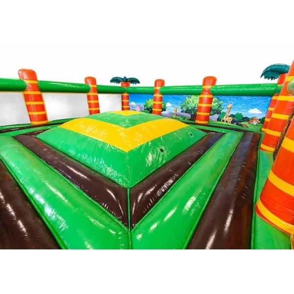 Een springberg die je overal kan plaatsen waar je maar wilt. Als je maar wat ruimte hebt. Deze Speelberg in het leuke thema Jungle kun je gemakkelijk overal opzetten en zo kinderen een fantastische dag bezorgen. Genoeg ruimte om lekker te springen en spelen. Wie wil dat nou niet? Deze speelberg met zijwanden en netten maakt toezicht houden makkelijk en zorgt er voor dat kinderen er niet af kunnen vallen.