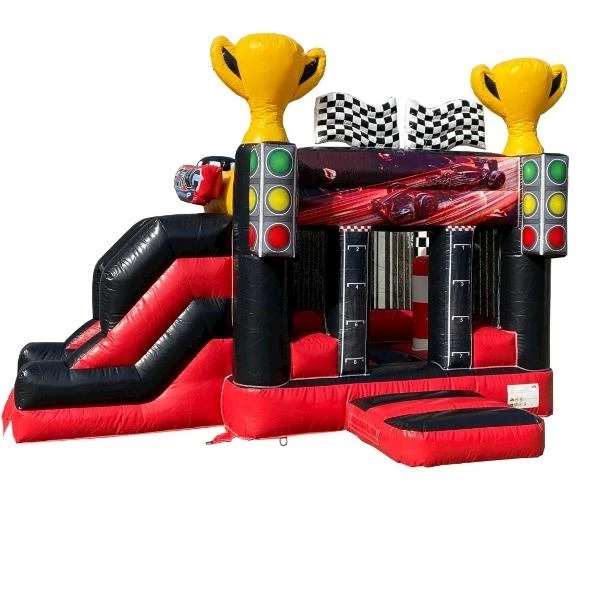 Ideaal voor verjaardagsfeestjes, schoolfeesten en evenementen, het Springkussen Mini Race met Glijbaan zorgt ervoor dat elk kind het naar zijn zin heeft en vol enthousiasme speelt!