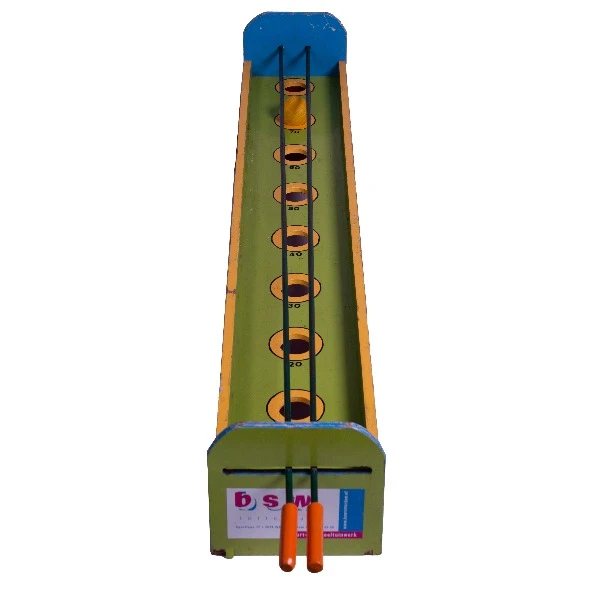 Pakket bestaand uit: een lange smalle houten bak en wordt geleverd met 1 harde bal