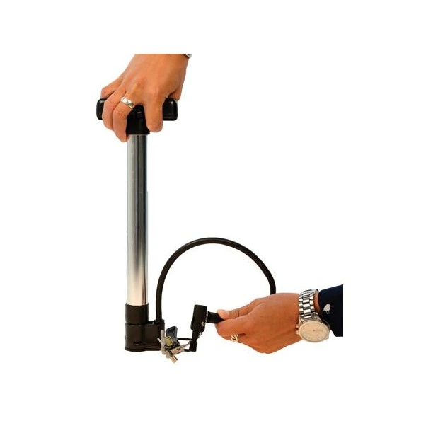 Deze voetpomp is multifunctioneel en geschikt om ballen en skippyballen mee op te blazen.